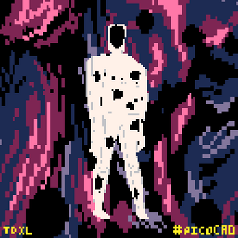 The background was separately made in picoCAD and then added to the normal character gifs with Aseprite. The transformation animation was made in Aseprite. I've never made an animation like this before, so I hope it turned out well.